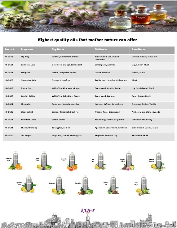 Arome City is proud to provide our customers with pure and natural essential oils designed to be used for our diffuser product lines.